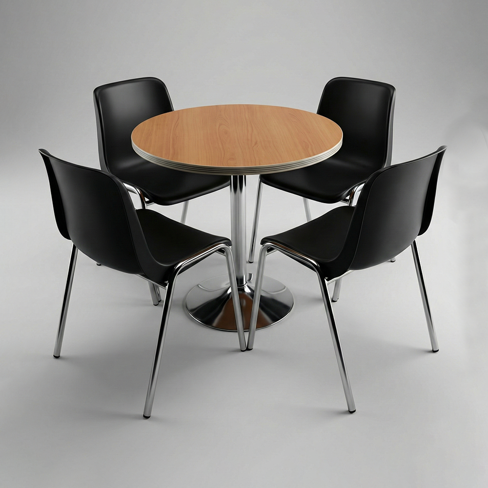 원형테이블 하나와 멀티의자 4개로 구성되어있습니다.