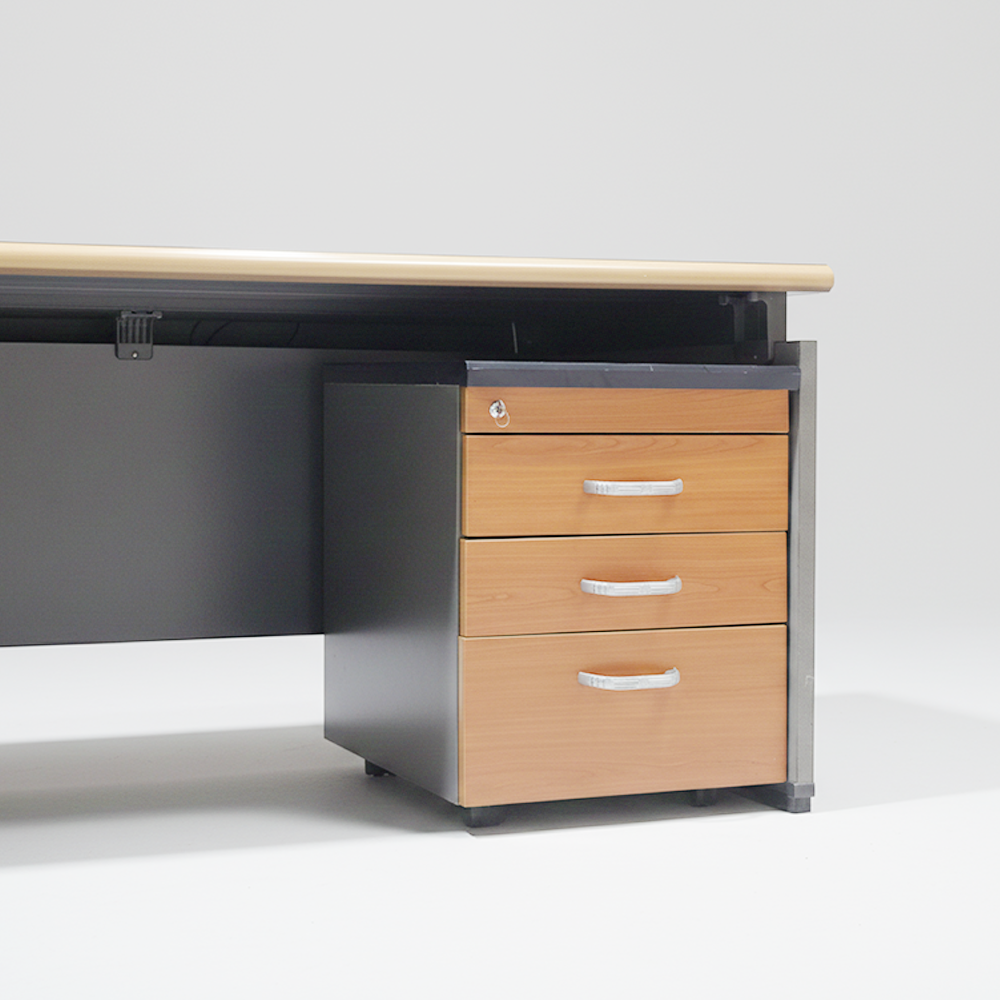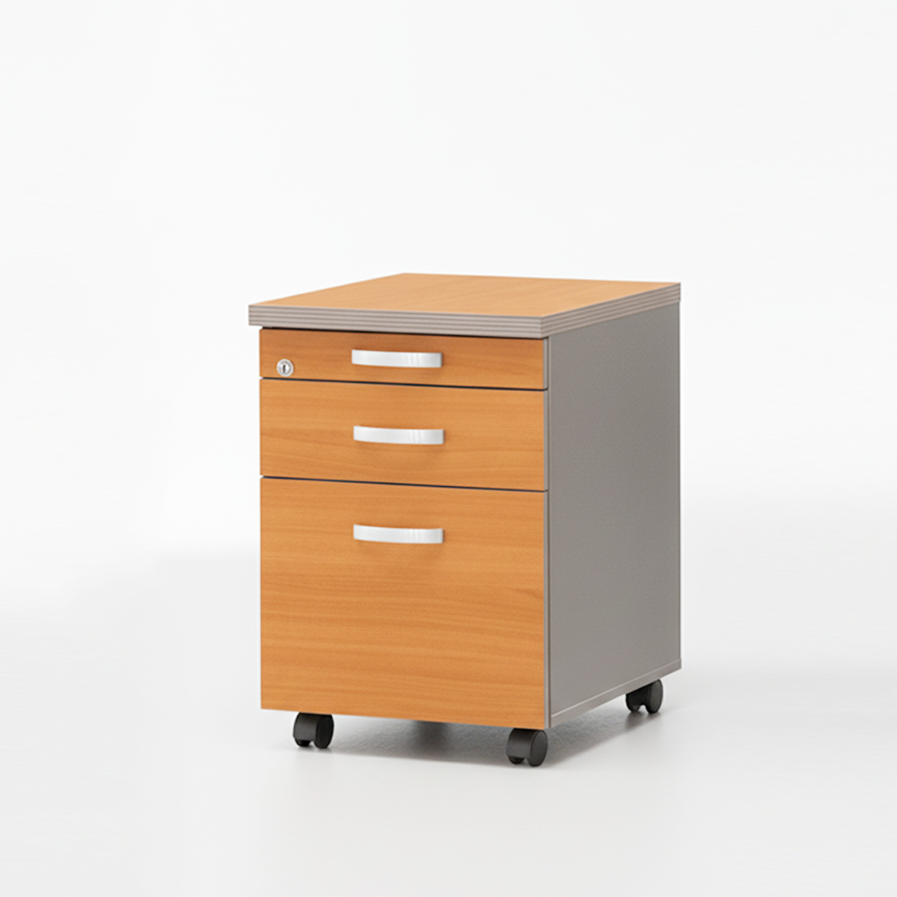 하단에 바퀴가 달려 있어 이동과 고정(스토퍼 기능)이 편리한 소형 서랍 수납 가구입니다. 주로 책상 아래에 두고 서류, 문구류, 개인 소지품 등을 보관하는 3단 구조가 일반적이며, 사무실이나 공부방 공간 효율성을 높여주는 다용도 수납 아이템입니다.